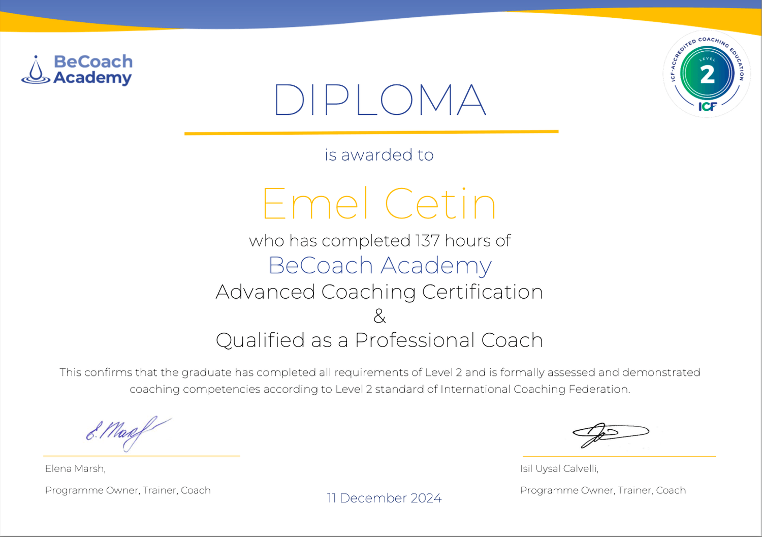 International Coaching Federation Level 2 trained coach